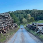 Und gleich daneben der landwirtschaftliche Trakt, wo offensichtlich gerade lautstark an der Brennholzproduktion für den kommenden Winter gewerkt wird. Riesige „Blöche“ an unverarbeitetem Holz sorgen, links und rechts des Weges liegend, für Nachschub und legen Zeugnis der Tätigkeit ab. Hier geht’s richtig rund. Beim nachträglichen Recherchieren stosse ich im Web auch auf den Inhaber: Brennholzhandel Marth. Falls wer Brennholz braucht …