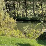 Zum Gastronomiebetrieb gehört auch dieser große Garten mit dem darunter liegenden Fischteich. Im Garten selbst befindet sich eine Art „Horoskop“ Wanderweg mit den Stationen des Tierkreises. „Astrosophischer Garten“ nennt der Erbauer sein Werk, das in seiner Blütezeit ein beliebtes Ausflugziel war.