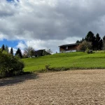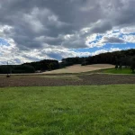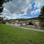 Angekommen am anderen Ende des Waldes sehe ich die ersten Häuser von Eltendorf vor mir. Mit den Hügeln im Hintergrund ergibt das abermals ein tolles Panorama und abermals Grund für viele Fotos. Allerdings will ich in diese Richtung aber heute nicht weiter wandern. Meine Route führt nun, hier am Waldrand, rechts weg. Richtung Zahling.