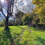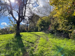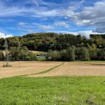 Ich lasse diesen speziellen Platz hinter mir und wandere weiter auf meiner Runde. Gleich nach dem Garten muss ich aufpassen. Hier wird der Feldweg etwas ungemütlicher und das Gras höher. Und er teilt sich. Was ich wieder mal zu spät bemerkt hatte. Aber ein routinierter Blick aufs Handy hat dann, zum richtigen Zeitpunkt, dann doch noch geholfen. Ich wechsle also, 50 Meter zu spät, den Weg und stampfe über die Wiese zum anderen Weg hinauf.