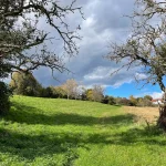 Nun verblassen die Spuren aber vollends. Ich blicke nochmal auf mein Handy. Der Weg war da. Zumindest am Display. In real nicht. An einem Obstbaum vorbei halte ich mich, der Route am Handy folgend, ein wenig rechts. Um nach dem Baum die Straße zu erblicken, die hier oben meine Route quert. Da muss ich hin. So passt das. Ich bin hier richtig. Das Wetter ist richtig. Der Tag ist perfekt.