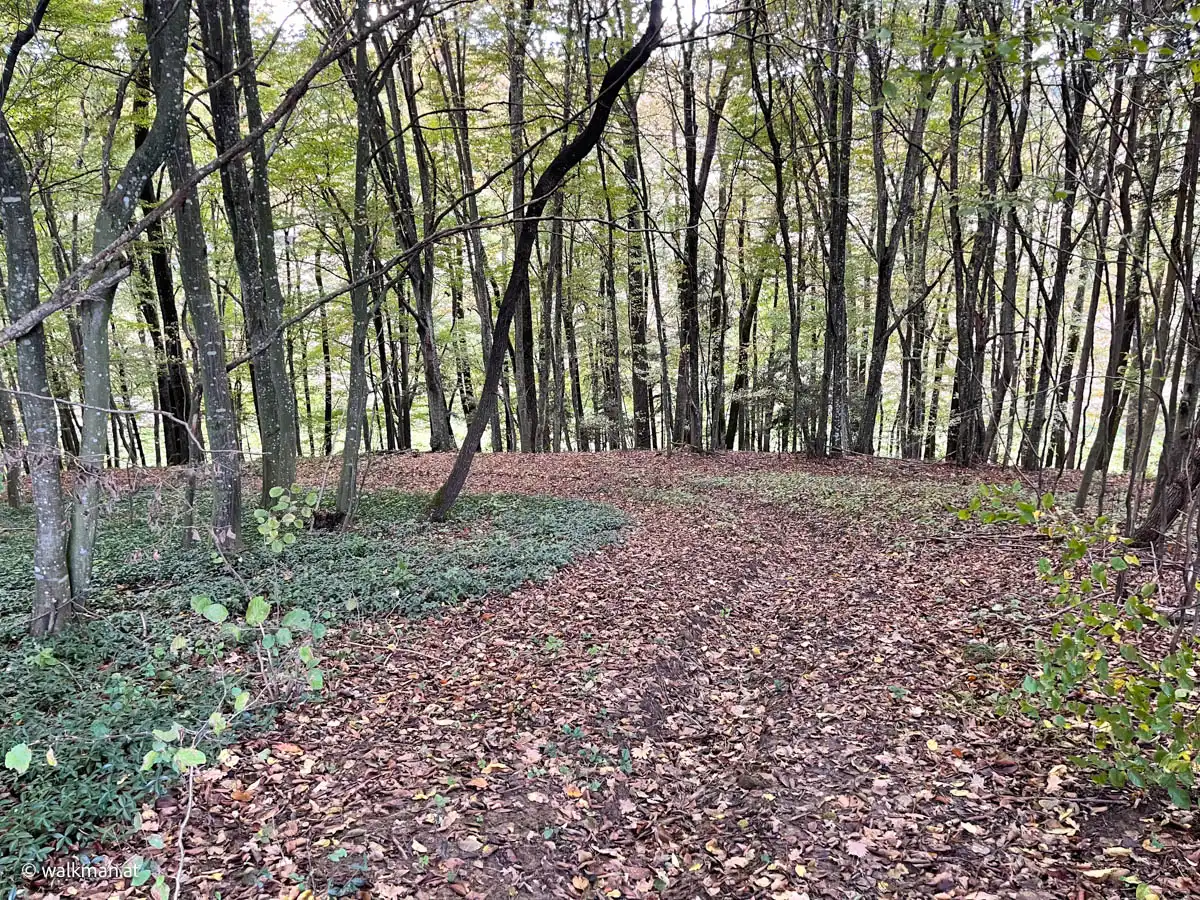 Flott den Berg hinunter marschierend, erreiche ich bei Kilometer 2,8 abermals eine „Challenge“. Bereits die letzten 100 Meter war ich wieder mal ohne sichtbare Route, auf einer Wiese am Waldrand, entlang spaziert. Aber nun stehe ich vor einem Wald. Ohne sichtbaren Weg. Und abermals ist dieser jedoch am Handydisplay sichtbar. Witzig.