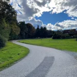 Zunächst lenkte ich meine Schritte in den Ort hinein. Hier geht es am Anfang ziemlich flach dahin. Genau das Richtige um meine Muskeln, nach ein paar Tagen Ruhe, wieder aufzuwärmen und für, die zu erwartenden „höheren Weihen“, vorzubereiten. Laut Routenplaner lagen ja doch knapp über 100 Höhenmeter vor mir. Und man kann sich, so meine Erfahrung, nie sicher sein, ob es dann am Ende in Wirklichkeit nicht doch vielleicht 150 sind. Nun, ich werd’s herausfinden.