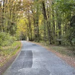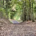 Und in diesen geht es nun auch rein. Auf einer langen Geraden mit Allee-Charakter nach Süden. Stetig leicht bergab. Das macht so richtig Laune und ich beginne im Geiste diverse Lieder zu summen. Schön ist es hier auch. Die Sonne blinzelt ab und zu durch den Blätterwald der Bäume und die Temperaturen sind hier, trotz Schatten, durchaus angenehm. Das macht richtig Spaß.
