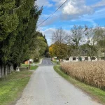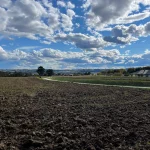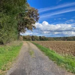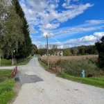 Ansonsten ist der Ort klein und schmuck, aber ohne weitere große Highlights. Und kaum im Ort drinnen war ich auch schon wieder draußen und lenkte meine Schritte in die Sackgasse hinein. Wie vom Routenplaner am Handy „befohlen“. Hier geht’s nun, weiterhin eben, nach Norden. Der Asphalt hatte sich verabschiedet und an seine Stelle war ein geschotterter, angenehm zu bewandernder, Feldweg getreten.