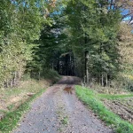 Aber jetzt auch nicht so tragisch, wie es sich anhört. Bei genauerem Hinsehen merke ich, dass ich nach einem kurzen Waldabschnitt wieder auf eine Straße stoßen sollte. Und da scheint auch kein Bach oder Graben dazwischen zu sein. Also sollte eine Wanderung ohne Weg durch den Wald auch kein Problem sein. Und gerade als ich von der Wiese in den Wald rein gehe, gibt sich auch der versteckte Weg, wieder zu erkennen. Hier, im Wald, sind nun wieder deutliche Spuren sichtbar, die von draußen unsichtbar gewesen waren. Mysteriös. Gefällt mir.