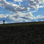 Angekommen bei Kilometer 2 ist wieder meine Aufmerksamkeit gefragt. Hier ist ein Abbieger. Zumindest sollte einer sein. Ob des hohen Grases und der, sichtlich weniger oft frequentierten Wegs, ist die weitere Route kaum in der Landschaft zu erkennen. Aber fast verblasste Spurrinnen zeigen mir dann doch: Hier geht’s lang.