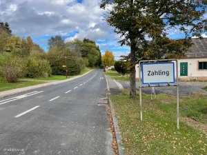 Für den Startpunkt der Wanderung hatte ich im Webtool das Zentrum von Zahling auserkoren. Was sich, beim Durchfahren des Ortes, aber als nicht praktikabel herausstellte. Parkplätze sind hier, im kleinen Ortsteil von Eltendorf, kaum vorhanden. Oder besser gesagt eigentlich gar nicht.