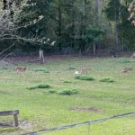 Ich war noch keine fünf Minuten unterwegs gewesen, als ich bereits auf ein erstes unverhofftes Highlight stoße: Gleich neben der Straße tummeln sich in einem weitläufigen Wildgehege viele Rehe. Wobei, tummeln wäre zu viel gesagt. Die meisten liegen gemütlich am Boden und nehmen keine Notiz von mir.