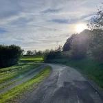 Bei Kilometer 3 erreiche ich wieder richtig festen Boden unter den Füßen und trete auf den Asphalt der Straße hinaus. Jetzt links halten und noch ein paar Meter, dann ist die Tour geschafft. Weiter vorne kann ich auch schon die Kapelle sehen. Und mein Vehikel, rechts am Straßenrand parkend.