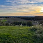 Aber gut. So ist es halt. Leider werden eben auch meine angedachten Sonnenuntergang-Fotos von hier heroben nicht die erhoffte Wirkung haben. So mache ich eben ein paar und drehe auch ein Video von der Aussicht, bei dem ich versuche die Hände so weit wie möglich über den Kopf zu halten, um die Weinstöcke doch noch ein wenig zu überblicken.