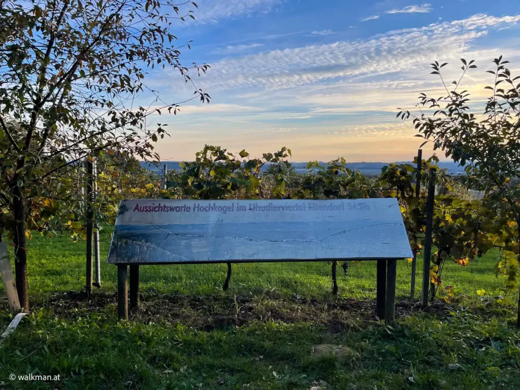 Was wiederum die Hoffnung auf besonders schöne Fotos aufkommen lies. Von der Aussichtswarte am Hochkogel oben. Diesen Platz hatte ich zwar, im Rahmen meiner 30km XXL Wanderung, besucht. Das war aber einerseits schon Jahre her und andererseits hatte ich erst vor ein paar Tagen die Uhudlerviertelrunde in Eltendorf, im Zuge einer Recherche, entdeckt.