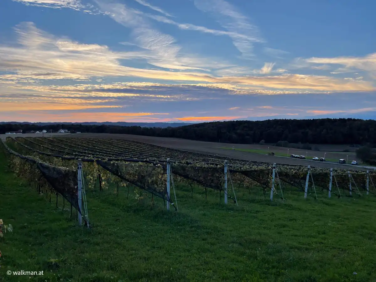 Von dieser Tour, dem „Uhudlerviertel-Rundwanderweg“, kann ich abschliessend nur sagen: Wer Bewegung machen möchte und ein wenig mehr von der Gegend sehen möchte, für den ist sie allemal geeignet. Wer sich aber eine grandiose Aussicht, oder gar eine Warte, am Hochkogel erwartet, wird eher enttäuscht sein.