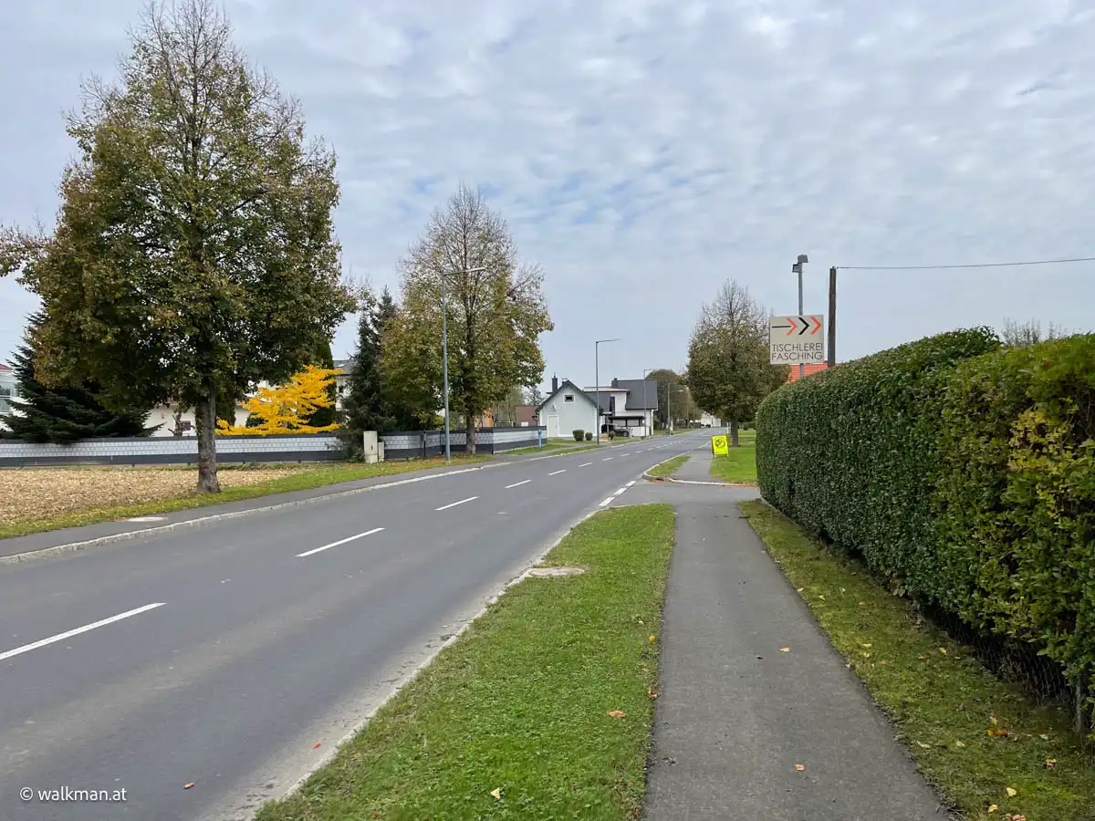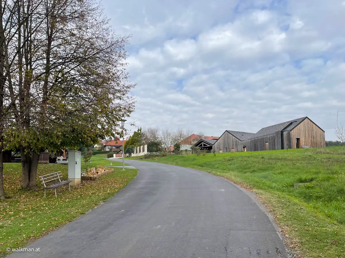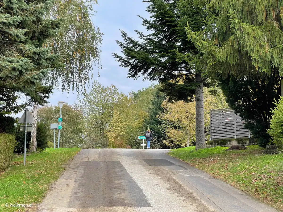 Beim Friedhof halten wir uns rechts. Nun noch ein kleines Stück den Weg weiter und bald sollte, links weg, der Anstieg zum Schlösslberg hinauf beginnen.