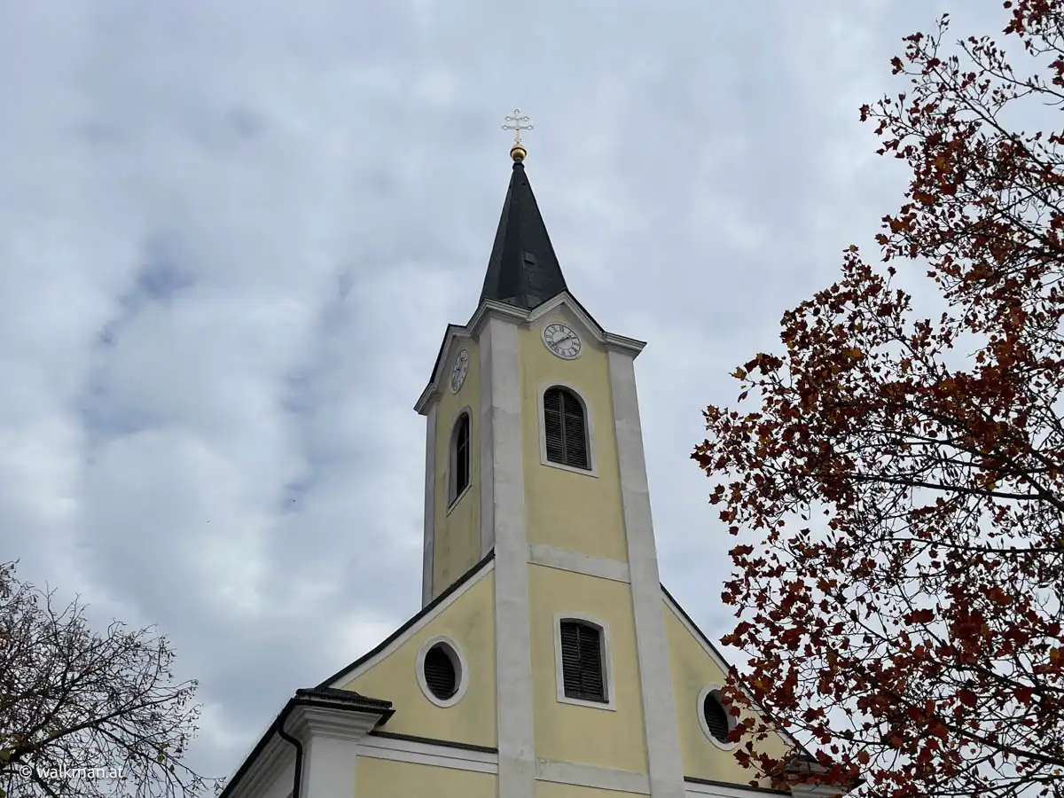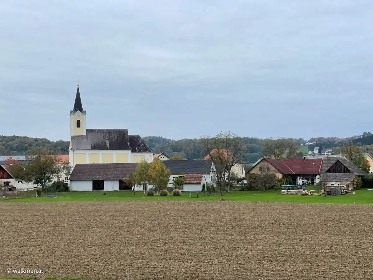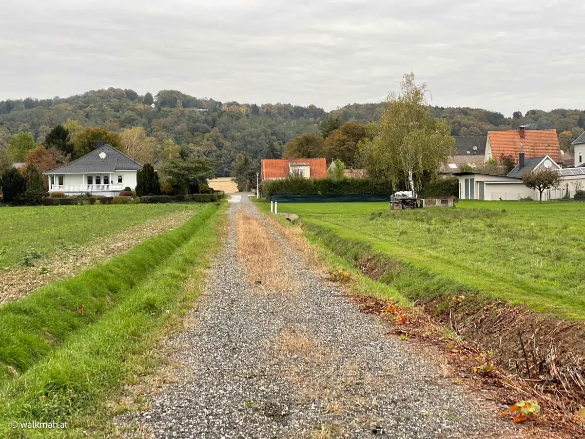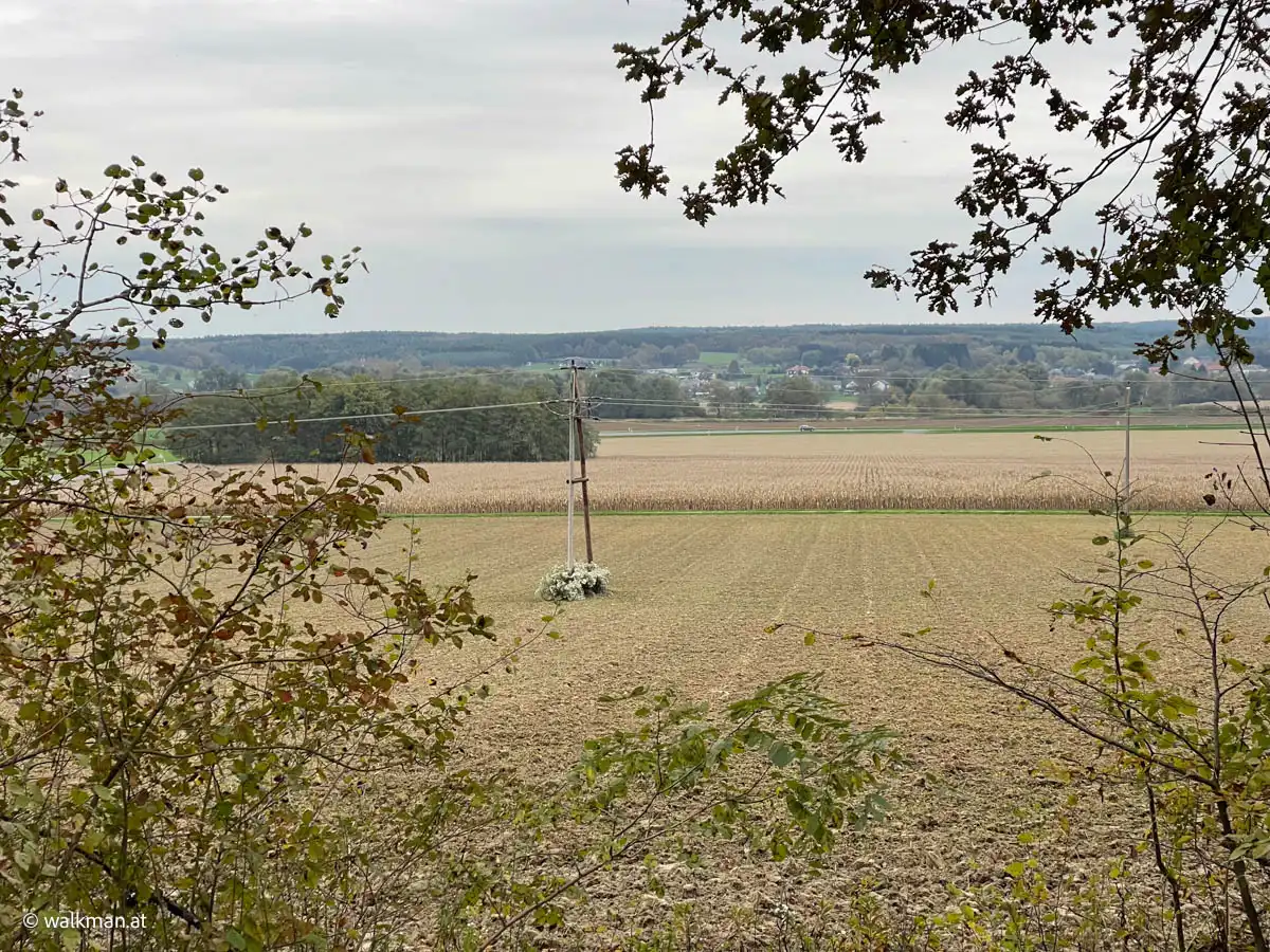 Beim Friedhof halten wir uns rechts. Nun noch ein kleines Stück den Weg weiter und bald sollte, links weg, der Anstieg zum Schlösslberg hinauf beginnen.