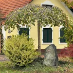 Unsere Route führte uns zuerst durch den Ort selbst. An der Hauptstraße entlang, bis zur Kirche. Vorbei an vielen alten Häusern, die aber großteils modern saniert in Summe ein wirklich schönes Ortsbild ergeben. Viele alte, hergerichtete Fensterläden. Viel Stuck an den Fassaden. Und das alles mit sichtlich viel Liebe gemacht, wie man unschwer an den oft originellen Vorgärten erkennen kann. Gefällt uns.