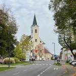Auch der modern gestaltete Platz beim Gemeindeamt und gleichzeitig der Vorplatz der Kirche passte hier gut ins Bild. Ein stimmiger Kontrast aus Klassik und Moderne. In einer Mischung, die elegant einem stilistischen Konflikt auswich, indem sie die Epochen, in Technik und Farbe, miteinander verband.