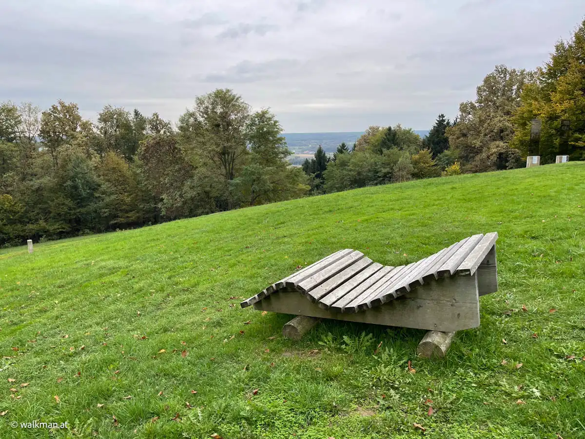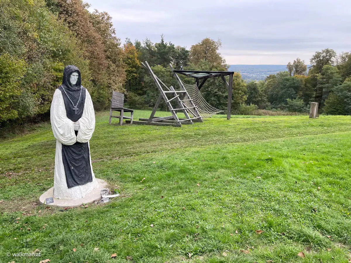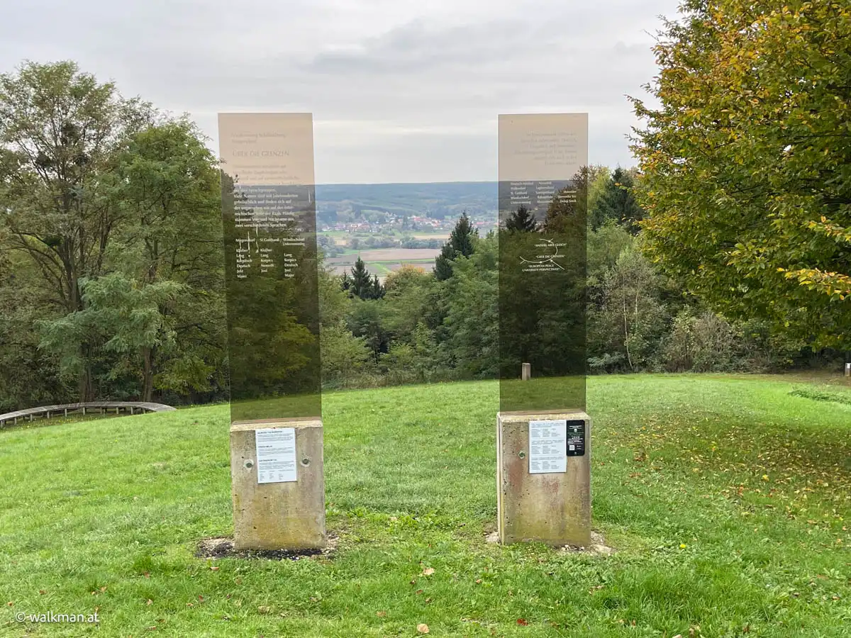 Bei diesem erörterten wir auch gemeinsam unsere weitere Vorgehensweise, mit dem Ergebnis, dass ich die Runde des „Friedenswegs“ nun alleine absolviere, während sich Manuela noch etwas länger ausrastete. Das hatte sie sich, nach über 100 Höhenmetern, auf jeden Fall verdient.