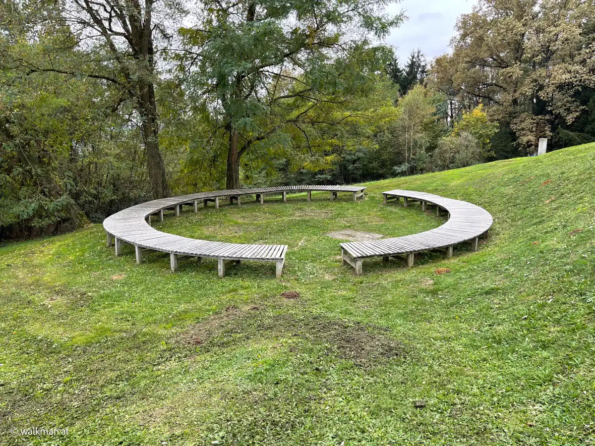 Was noch hier oben liegt, ist der eigentliche Friedensweg. Hier waren auf einem kurzen Rundweg diverse Stationen errichtet zum Thema „Frieden“. Und diesen wollte ich auch gehen. Nur war ich noch unschlüssig ob vor, oder nach der Pause. Nach kurzem Abklären mit meiner Gefährtin entschieden wir zuerst gemeinsam die Pause einzulegen.