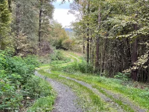 Bei lockerer Unterhaltung durch den Wald. So möchte ich diesen Abschnitt in kurzen Worten beschreiben. Auf einem geschwungenen Waldweg stetig bergab. Unspektakulär und ohne Highlights. Dafür aber mit viel Natur und der gesunden Waldesluft.