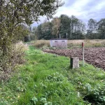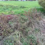 Was ich aber beim Inspizieren der näheren Umgebung entdecke, ist eine Art Wildpfad durch die Dornenhecken und das Dickicht links und rechts der Gleise. Und durch den Graben, der hier entlang der Gleise verläuft. Mit ziemlicher Sicherheit der ehemalige „Grenzgraben“ vermute ich. War es dann, beim nachträglichen Recherchieren doch nicht. Einfach nur ein Wassergraben.