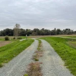 Zwei Fahrspuren am Damm oben bieten uns jetzt aber auch die Option, die Gleise zu verlassen und auf diesen weiter zu wandern. Die wir nun auch wählen. Wesentlich bequemer als weiter zu balancieren. Das Abenteuer „Gleiswanderung“ ist also nun zu Ende. Jetzt beginnt das „Damm-Walking“.