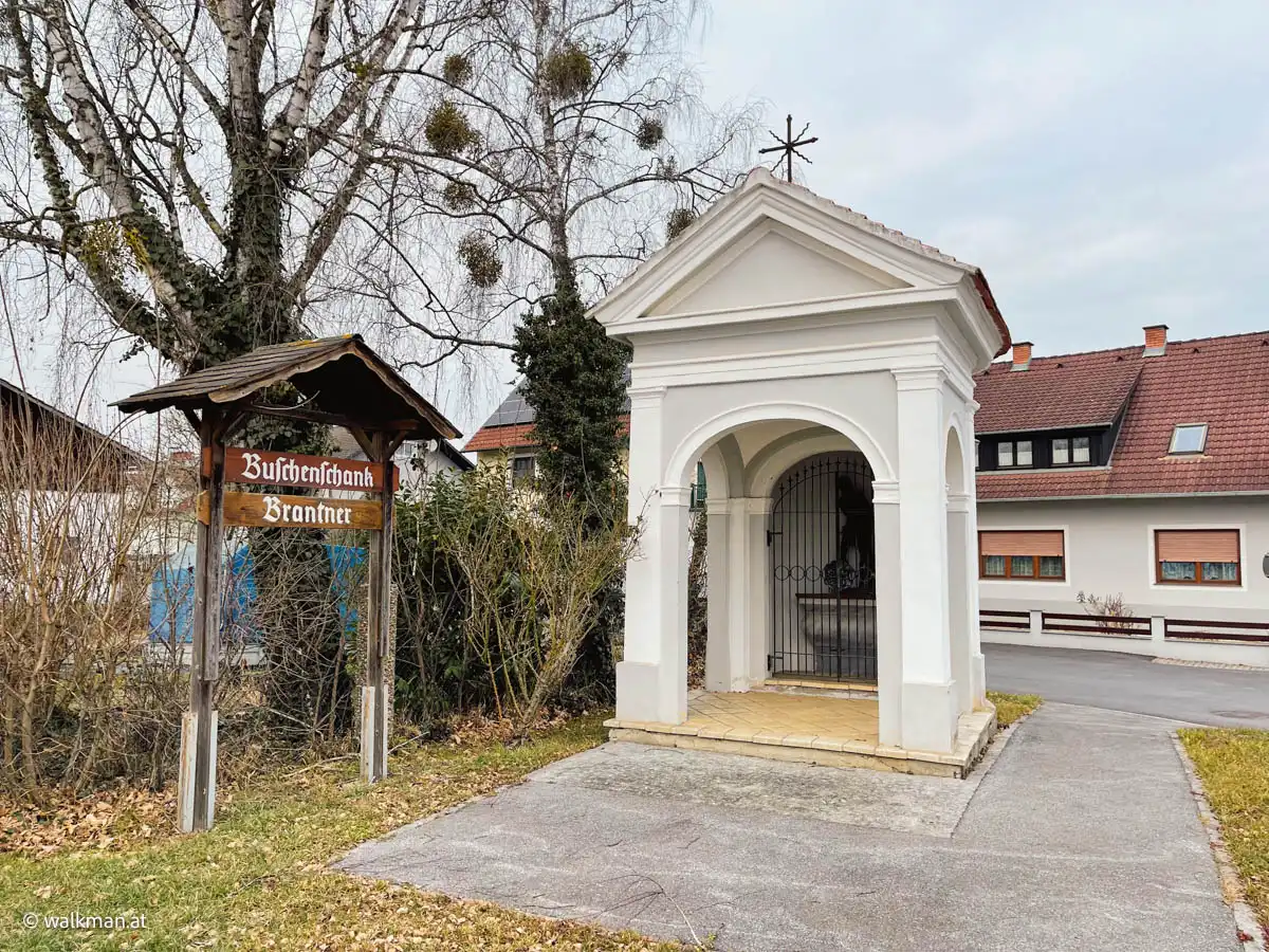 Unsere abgesteckte Tour führt uns zunächst den Schotterweg nach Süden, in Richtung der Bundesstraße. An dieser fast (es wären noch etwa 40 Meter bis zur Straße gewesen) angekommen, biegen wir nun rechts ab und marschieren, auf der alten Bundesstraße, in den Ort Altenmarkt bei Fürstenfeld hinein.
