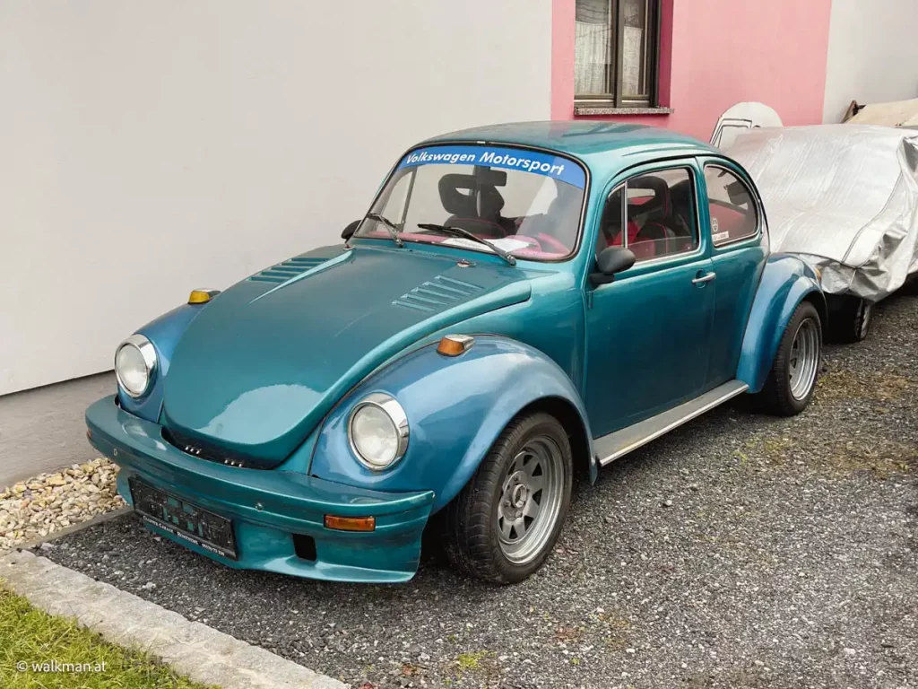 Des Rätsels Lösung folgt auf den Fuß: Hier ist er örtliche Käferclub ansässig. Und gleich ums Eck steht auch ein besonders schönes Exemplar zum Verkauf. Ein waschechter 1303er. Samt Speziallackierung, Breitreifen und verbreiterten Kotflügeln. Um „schlappe“ € 7.500,-. Aber immerhin ist, laut Verkaufsschild hinter der Windschutzscheibe, alles typisiert. Etwas für ausgewiesene Liebhaber. Aber fragen darf man ja, also: