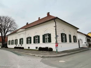 Hier, am Hauptplatz, findet man, an der Adresse Angerstraße 1, auch ein schönes, altes Wohnhaus mit Biedermeierfassade. Und an diesem wandern wir jetzt auch vorbei, weiter nach Norden, die Angerstraße entlang.