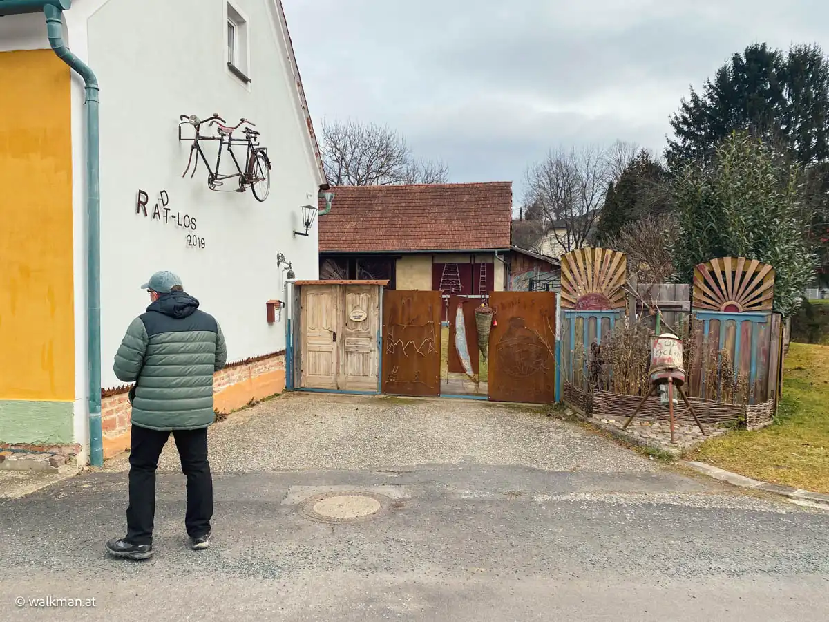 Besonders ein Haus sticht uns ins Auge. Sowohl Manuela als auch ich haben ja eine Affinität zu diesen Alten, typisch Burgenländischen, Häusern. Diese Streckhöfe, mit oder ohne Arkadengang, haben es uns wirklich angetan.