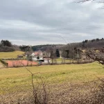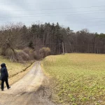 Planend und scherzend wandern wir weiter, stetig bergab, die Marbachstraße hinab nach Eltendorf. Links begleitet von Wiesen, Feldern und schöner Aussicht auf den Ort. Rechts von Wiesen und Wald.
