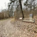 Nun wandern wir, nach dem Queren einer Kreuzung am Waldrand, auf der „Marbachstraße“ weiter. Jetzt wieder auf Asphalt und angenehm flach. Auch der Wind, der nach dem Ort und vor der Steigung ein wenig aufgefrischt hatte, hat nun nachgelassen. So kann es bleiben.