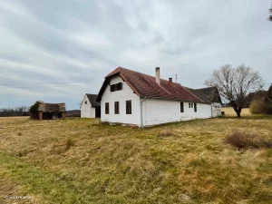 Dieses hat ein neues Dach, aber scheint verlassen zu sein. Auch das Gras im Hof wirkt, als wäre es das letzte Mal vor einem Jahr gemäht worden. Hat hier jemand die Sanierung aufgegeben und möchte das Haus veräußern?