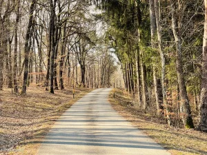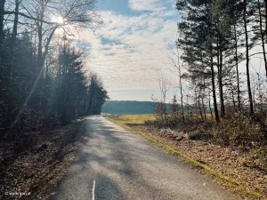 Aber zurück ins Heute und zu unserer Tour. Nun ging es in den Wald und hier auch gleich ans Eingemachte. Nach dem kurzen Stück bergab wartete nun die stärkste Steigung der Route auf uns. Jetzt auch auf einem weniger bequemen, mehr oder weniger geschotterten Waldweg.