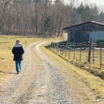 Und auch mit mehr Abwechslung verbunden. Zu unserer Linken grasen in einer Koppel drei, vier Pferde (natürlich „Araber“) und in einer weiteren vier, fünf Eseln (die kenne ich!). Rechts von uns macht sich eine Frau gerade geschäftig, mit einer Schere an Weinreben zu schaffen. Wir fragen nicht, was genau sie da tut, aber wir grüßen uns wechselseitig freundlich. Es bleibt bei unserer Spekulation, dass sie vermutlich schon die Reben beschneidet. Sagt man da so dazu?