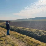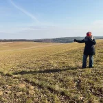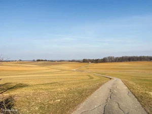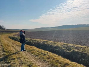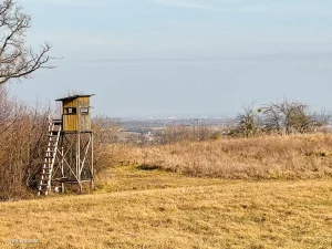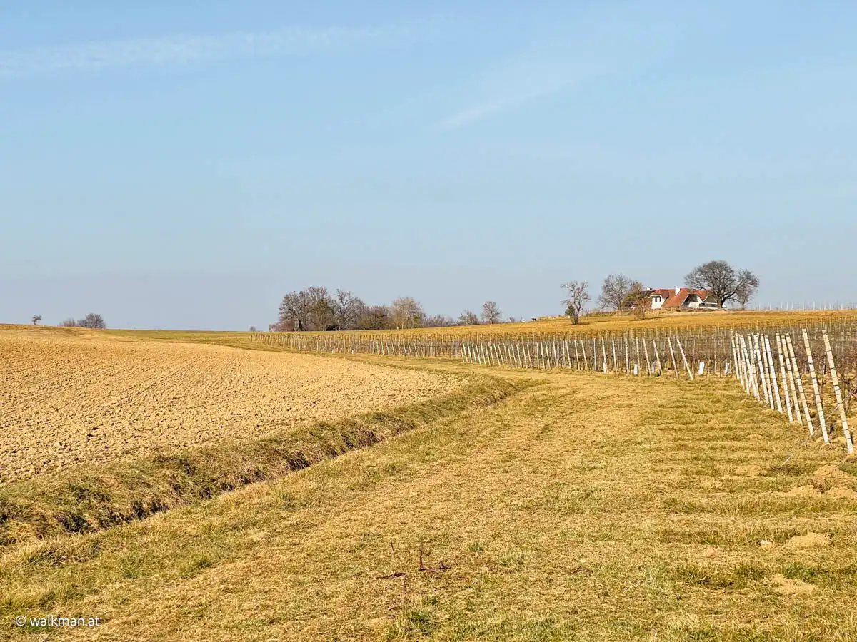 Etwa nach 45 Minuten Wanderzeit am heutigen Tage treten wir, nach erfolgreicher Bewältigung der Steigung, bei Kilometer 2,35 aus dem Wald heraus und werden mit einem tollen Panorama belohnt. Die quasi „Hochebene“ des Hochbergs breitet sich vor uns aus. Sofern es nicht vermessen ist im Burgenland von Hochebenen zu sprechen. Wir sind nun im Hotter von Heiligenbrunn unterwegs.