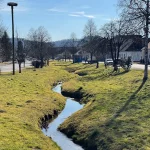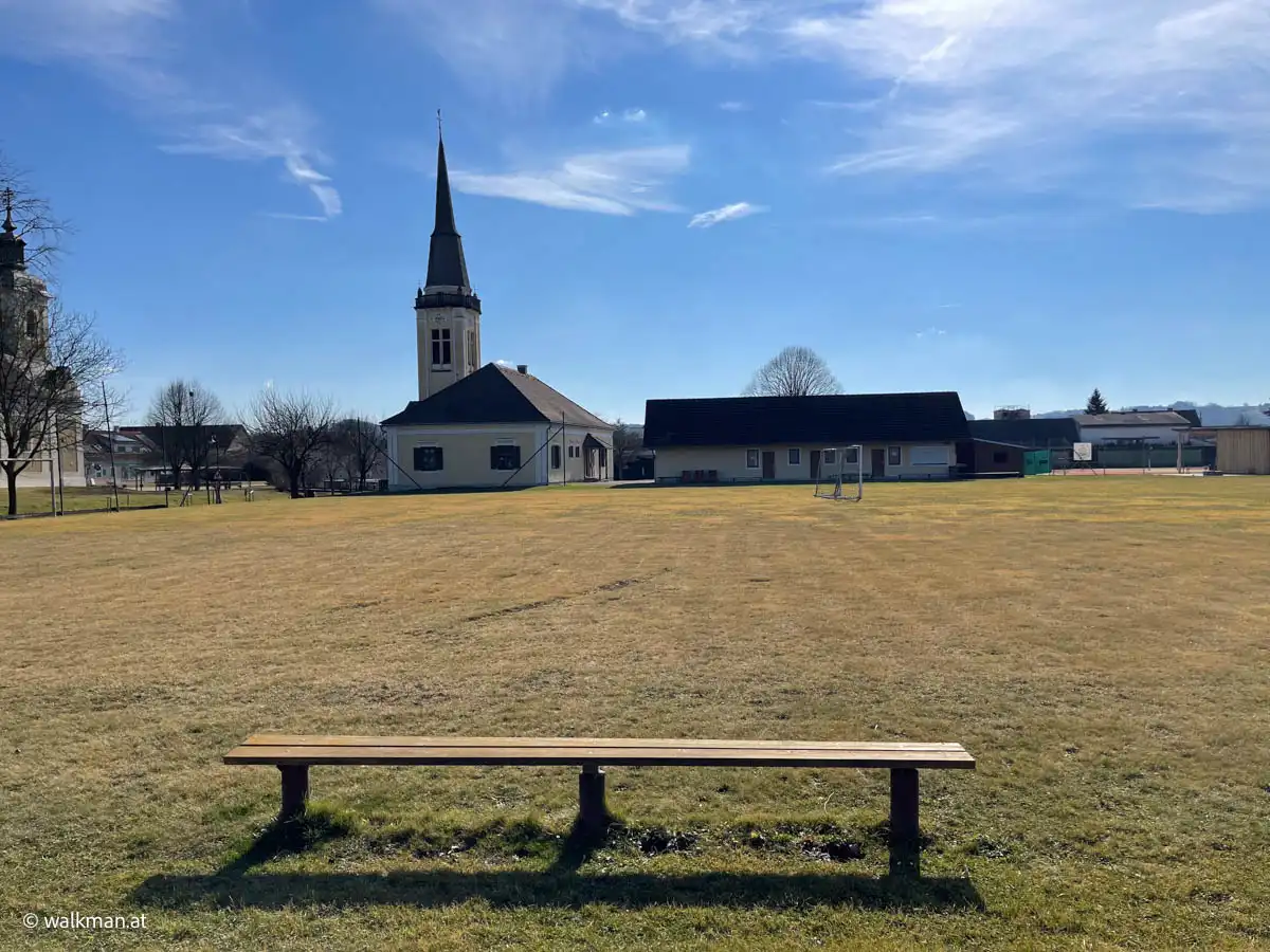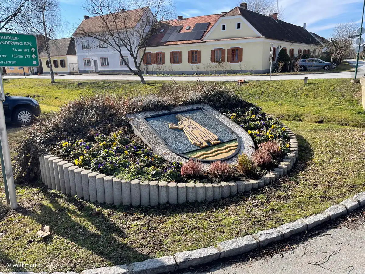 Als Startpunkt wählten wir die Parkplätze neben dem Ortswappen. Hier, im Zentrum der Gemeinde sind immer Plätze frei. So auch heute. In Summe standen überschaubare 3,5 Kilometer am Plan. Also ein kurzweiliger Spaziergang mit einem Schuss Bildung und danach ein guter Kaffee.