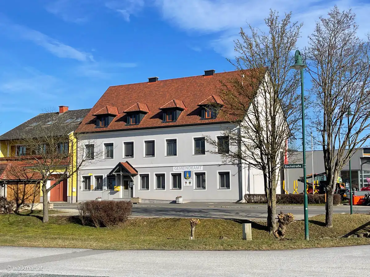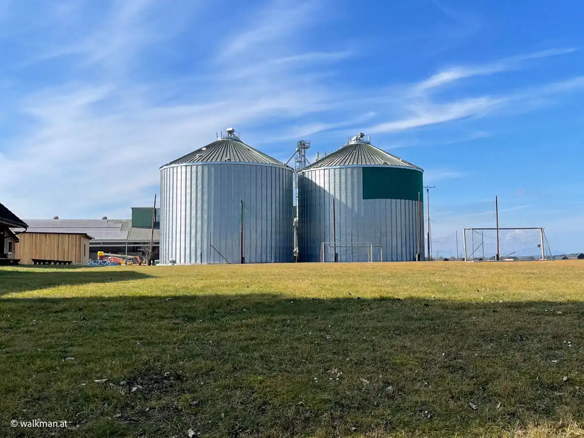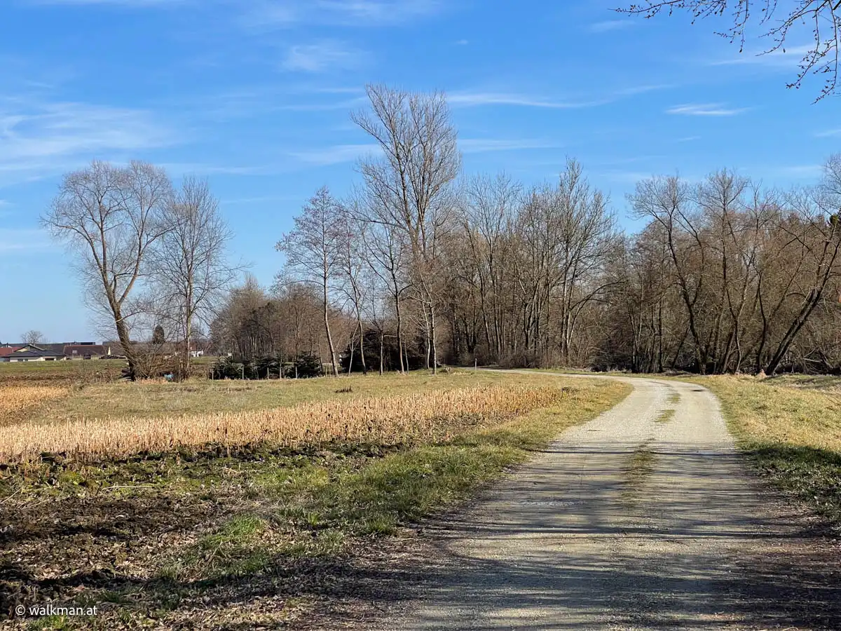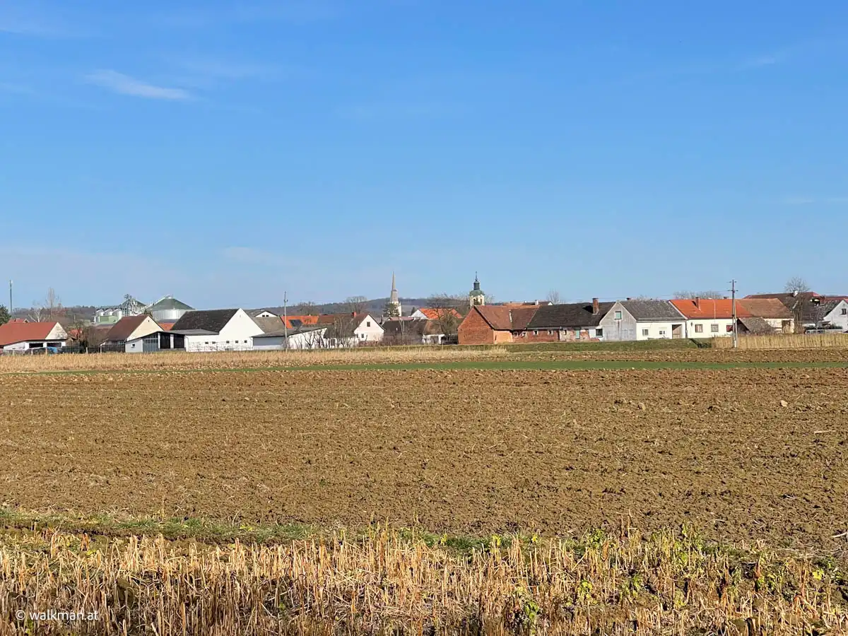 Angekommen an einer Wegkreuzung halten wir uns rechts und marschieren nach vor, zur Hauptstraße. Auf der wir uns bei Kilometer 3,2 nun links halten. Der letzte Abbieger für heute. Nun führt unsere Route nur mehr geradeaus bis zu unserem Vehikel. Vorbei am Gemeindeamt und an einem Hofladen erreichen wir dieses dann kurze Zeit später auch.