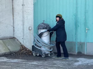 Lustiges finden wir bei einem Unternehmen hier. Beim „Landesproduktenhandel“ (sic!) steht neben dem Tor ein fast mannshoher Staubsauger. Ob mit dem die Wohnung schneller sauber werden würde? Vermutlich. Aber dann ist wahrscheinlich auch nichts mehr außer der wirklich schweren Möbel übrig. Alles andere landet im extra-starken Sauger. Da muss natürlich ein Foto unbedingt sein.