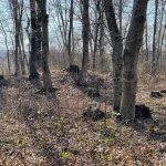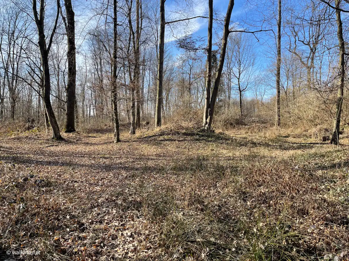 Angekommen beim Wald sehen wir auch schon ein Hinweisschild. Und Bäume. Und Gestrüpp. Aber sonst eigentlich nichts Außergewöhnliches. Nun gut. Also marschiere ich ein paar Meter in den Wald hinein, auf der Suche nach einem Grab. Und tatsächlich. Hier sind ein paar Hügel. Ja nicht nur ein paar. Etliche.