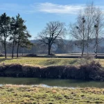 Nach etwa 10 Minuten brechen wir wieder auf. Bevor die Muskeln komplett erkalten. Wir haben ja noch die Hälfte der heutigen Strecke vor uns. Wir wandern entlang des Teiches weiter, halten uns am westlichen Ufer links und spazieren nun in südlicher Richtung wieder nach Königsdorf zurück.