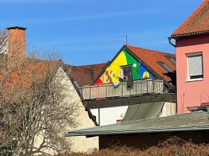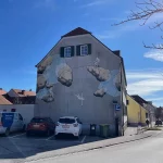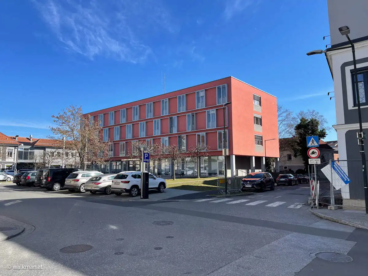 Zwischen dem Kinderfreundeplatz – von dem man einen tollen Blick auf die ehemalige Stadtmauer, samt Wohngebäude oben drauf, hat – und dem Spielplatz Ertlberg halte ich mich abermals rechts und spaziere die Realschulstraße entlang. Auf Höhe der Klostergasse biege ich in ebendiese hinein.