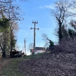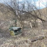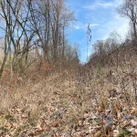 Und jetzt stand ich davor. Oder besser gesagt darunter. Nach der Kläranlage war ich noch ein kleines Stück Waldweg gegangen, bevor ein grosser Basaltstein zu meiner Linken meine Aufmerksamkeit erregte. Ist er als Erkennungsmerkmal für die Schneise gedacht oder aus einem anderen Grund hier positioniert? Ich weiß es nicht. Was ich aber weiß ist, dass ich nun direkt unter der Schneise stehe.