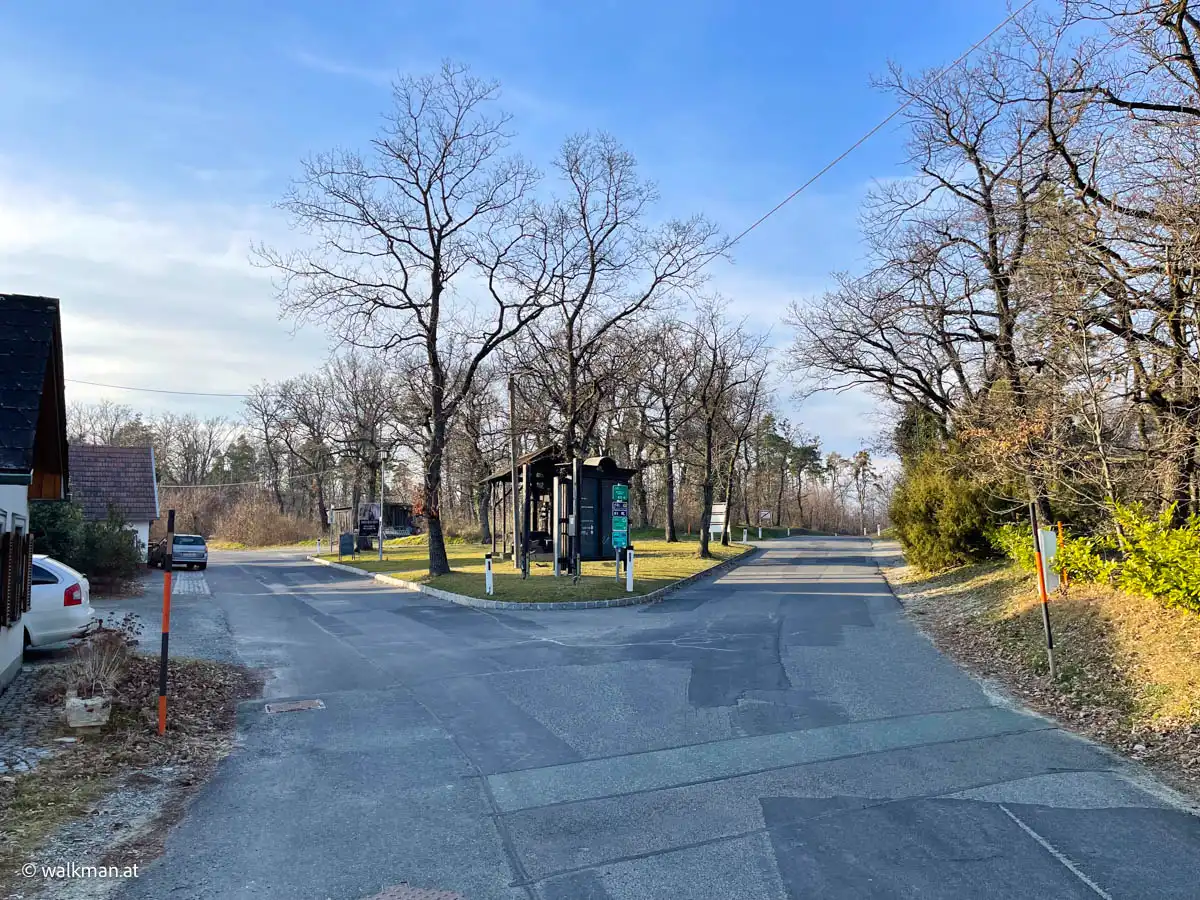 Aber heute werde ich diese nicht besuchen. Mir reicht der Blick von hier oben. Und ich möchte auf meiner Tour weiter wandern. Mittlerweile bin ich bei Streckenkilometer 2,5 angekommen nach 1:23 h gesamter Wegzeit. Vor mir liegen jetzt noch knappe 2 Kilometer und die werden eher von der angenehmen Sorte sein. Habe ich doch auf der restlichen Strecke keine Steigung mehr zu erwarten und bin auch nur mehr auf Asphalt unterwegs.