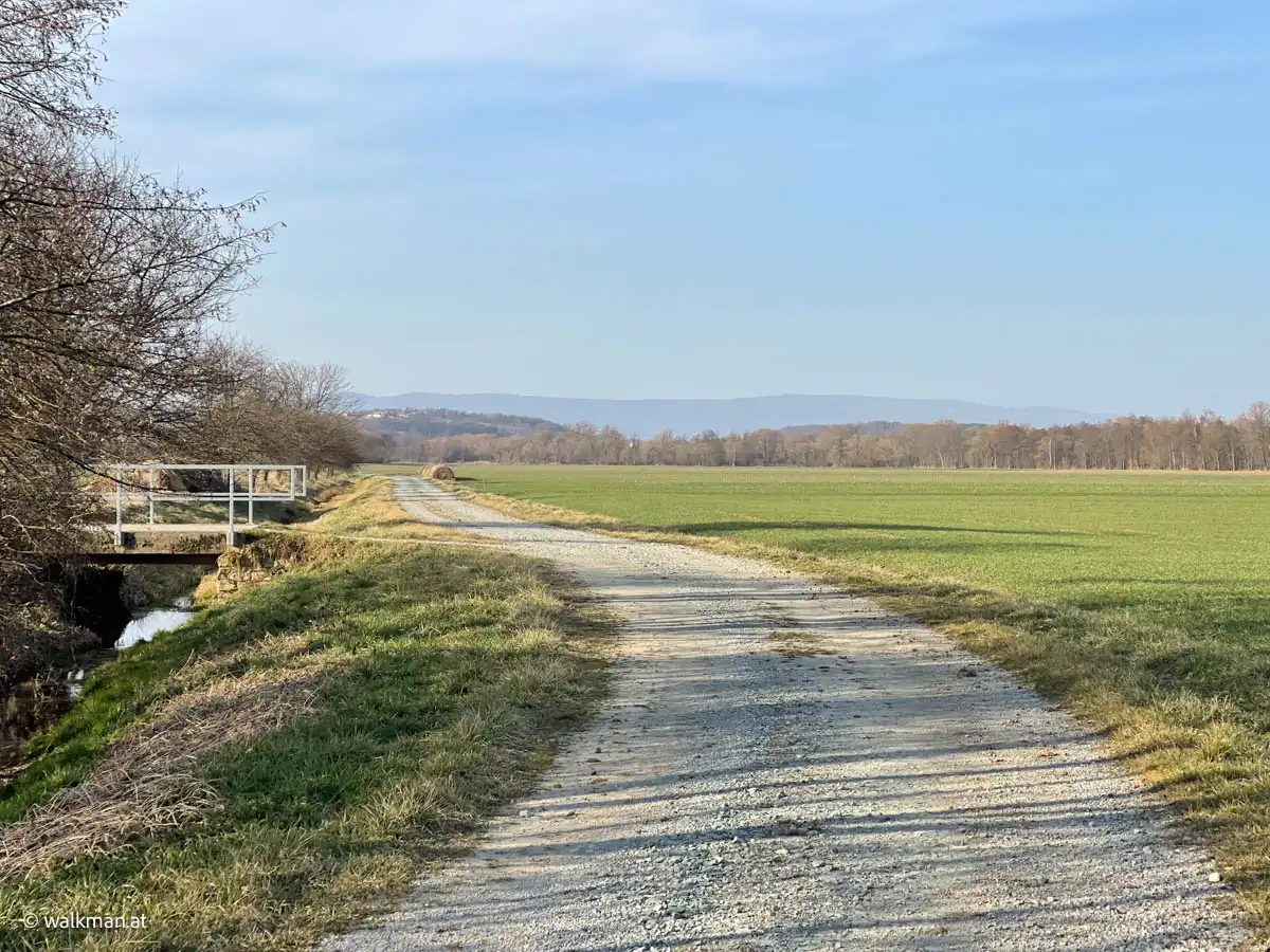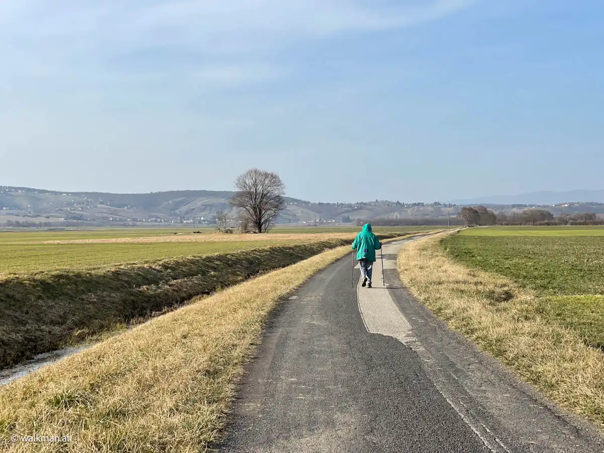Im Gegensatz zum westlichen Teil des Ortes, wo Weinberge und Wälder an den Ausläufern der Alpen für hügelige, aussichtsreiche Wanderungen bestens geeignet sind, ist der Osten wirklich komplett flach. Das bedeutet aber auch, wenn der Wind hier weht, dann zieht er, mangels Windschutz, so richtig durch.