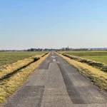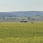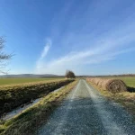 Nun, gut. Das sollte ja kein Problem sein. Nach der Ortstafel findet sich sicher ein Feldweg in dieselbe Richtung rein. Und tatsächlich. Keine 30 Meter nach der Ortstafel kann ich, auf einer brach liegenden Wiese, unverkennbare Spuren von Fahrzeugen entdecken. Offensichtlich ein Wiesenweg. Also nichts wie rein.