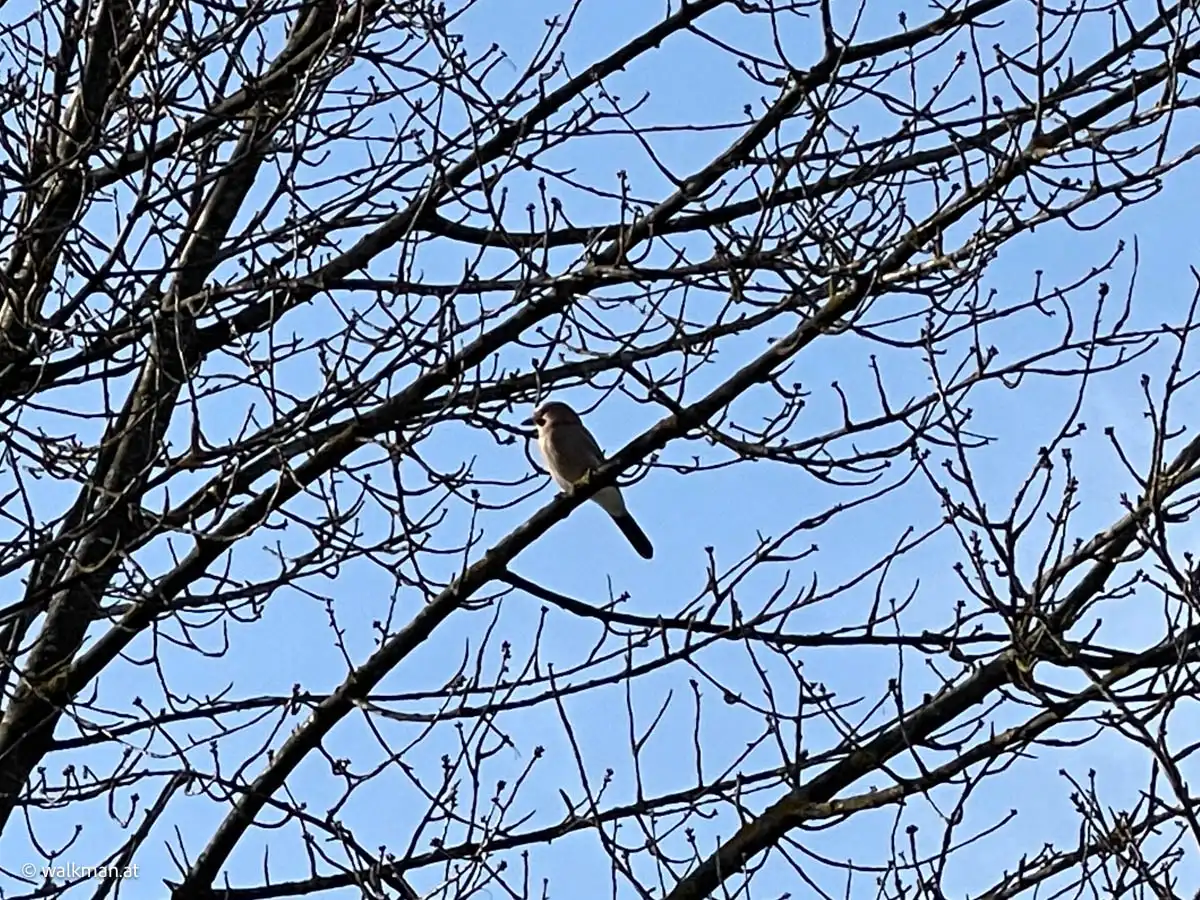 Nach etwa 50 Minuten Wegzeit treffe ich auf eine rüstige Dame, die „bewaffnet“ mit zwei Walking-Stöcken hier ebenso etwas für Gesundheit tut. Beim Überholen eben dieser entsteht aus einem, im Vorbeigehen gesagten „Grüß Gott“ schnell ein angeregtes Gespräch samt Pause.