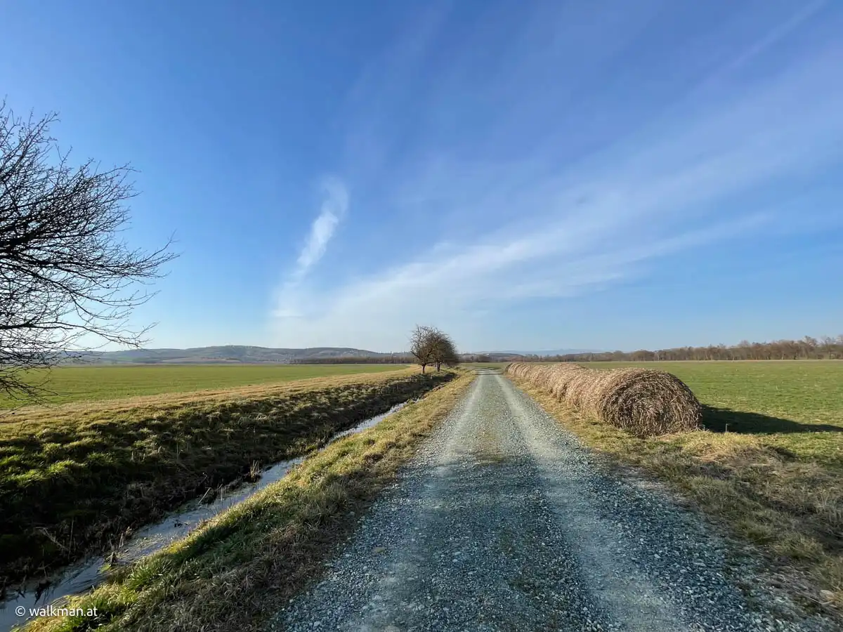 Bald angekommen an der nächsten Wegkreuzung wanderte ich jetzt, Richtung Deutsch Schützen, nach Süden. Mit dem wesentlich stärker gewordenen Südwind nun so richtig im Gesicht. Ein Blick auf das Handy verriet mir, dass ich noch etwa 1,7 Kilometer bis zum Ortsbeginn und den schützenden Häusern hatte. Das wird „lustig“.