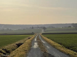 Und gerade wenn es am schönsten ist, soll man ja aufhören. Das war nun auch bei mir der Fall. Zuletzt noch an der Kirche vorbei und angekommen bei meinem Auto, war nun auch meine heutige Tour zu Ende. Insgesamt 7,4 Kilometer und gut eineinhalb Stunden Wegzeit. Mein Gesicht dabei hoffentlich auch ein wenig gebräunt vom sonnigen März-Südwind.