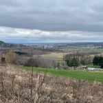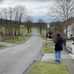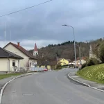 Oberhalb von meinem Standpunkt, am Hügelkamm, erhob sich die Kirche von St. Nikolaus, inmitten von weiteren Häusern des Ortes. Zeit für neue Fotos. Und vor mir sah ich auch schon den Weg, den ich links weg, wieder zur Straße hinauf gehen wollte.